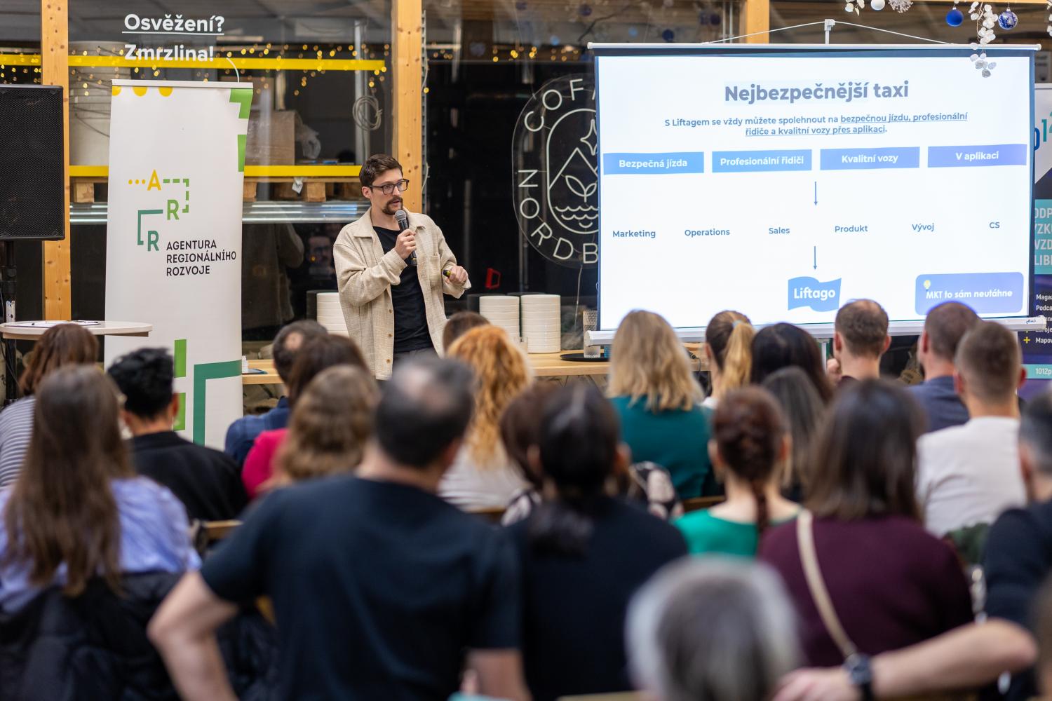 Program večera otevřel Lukáš Musil a ukázal, jak Liftago buduje značku navzdory cenovému tlaku konkurence. Místo zlevňování se vydává opačným směrem a staví na kvalitě služby, profesionálních řidičích a spolehlivých vozech.
